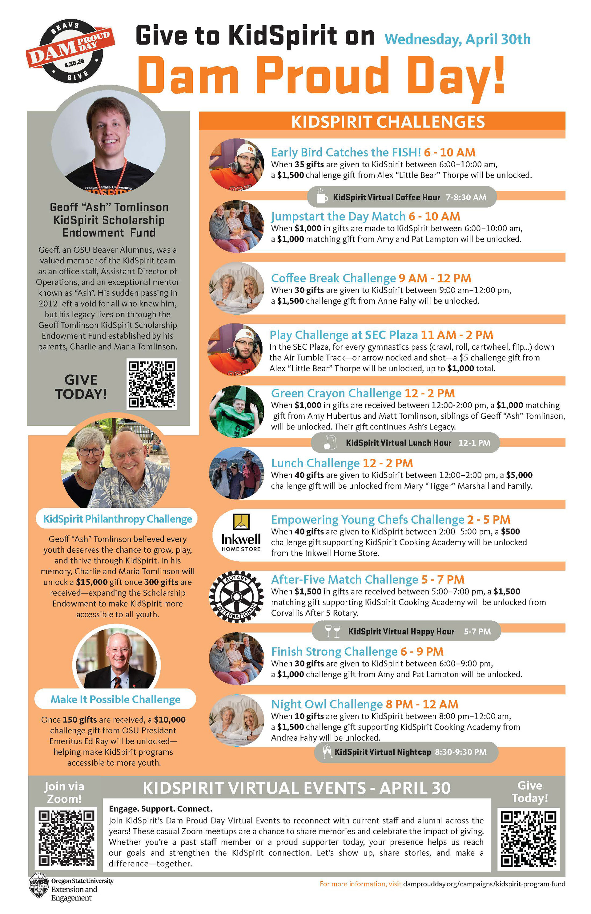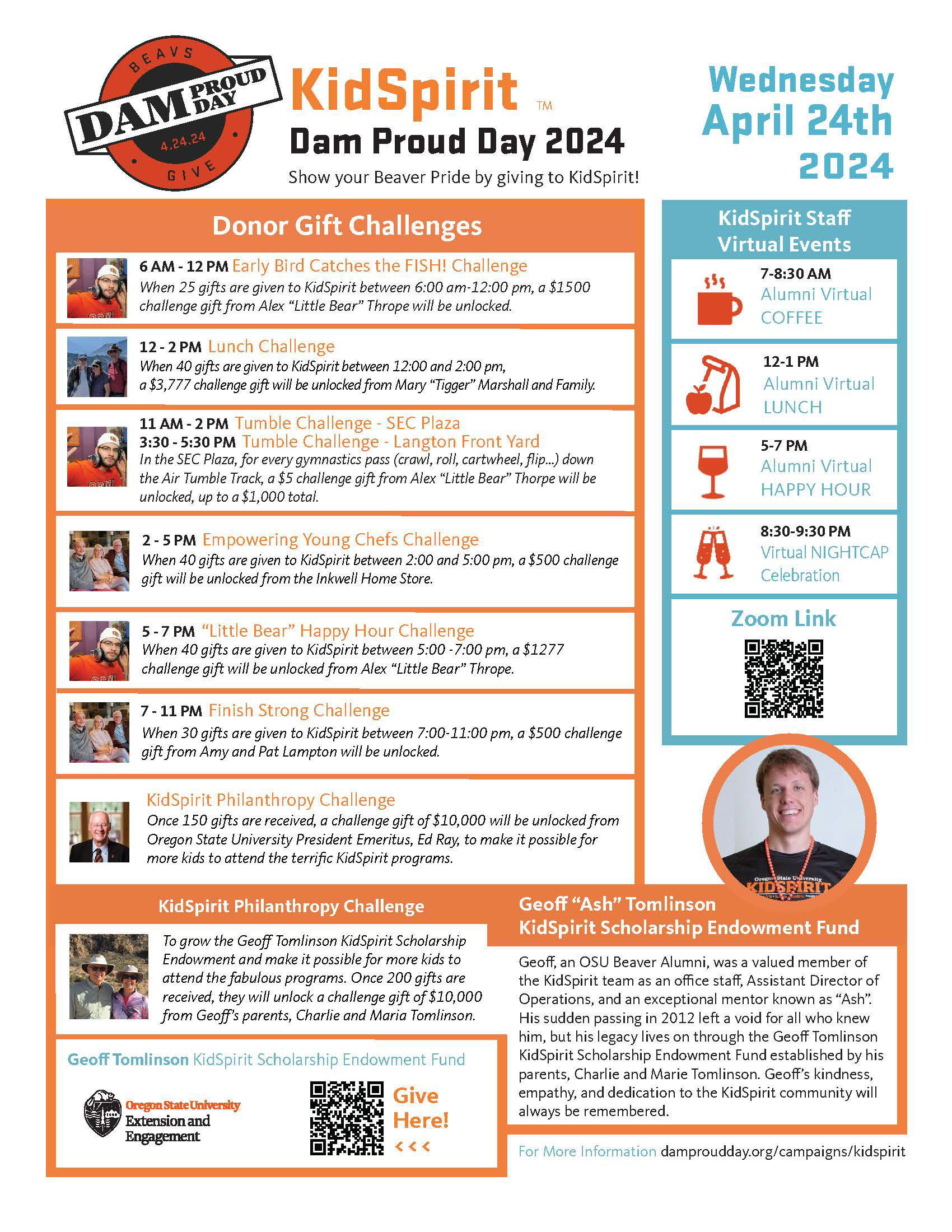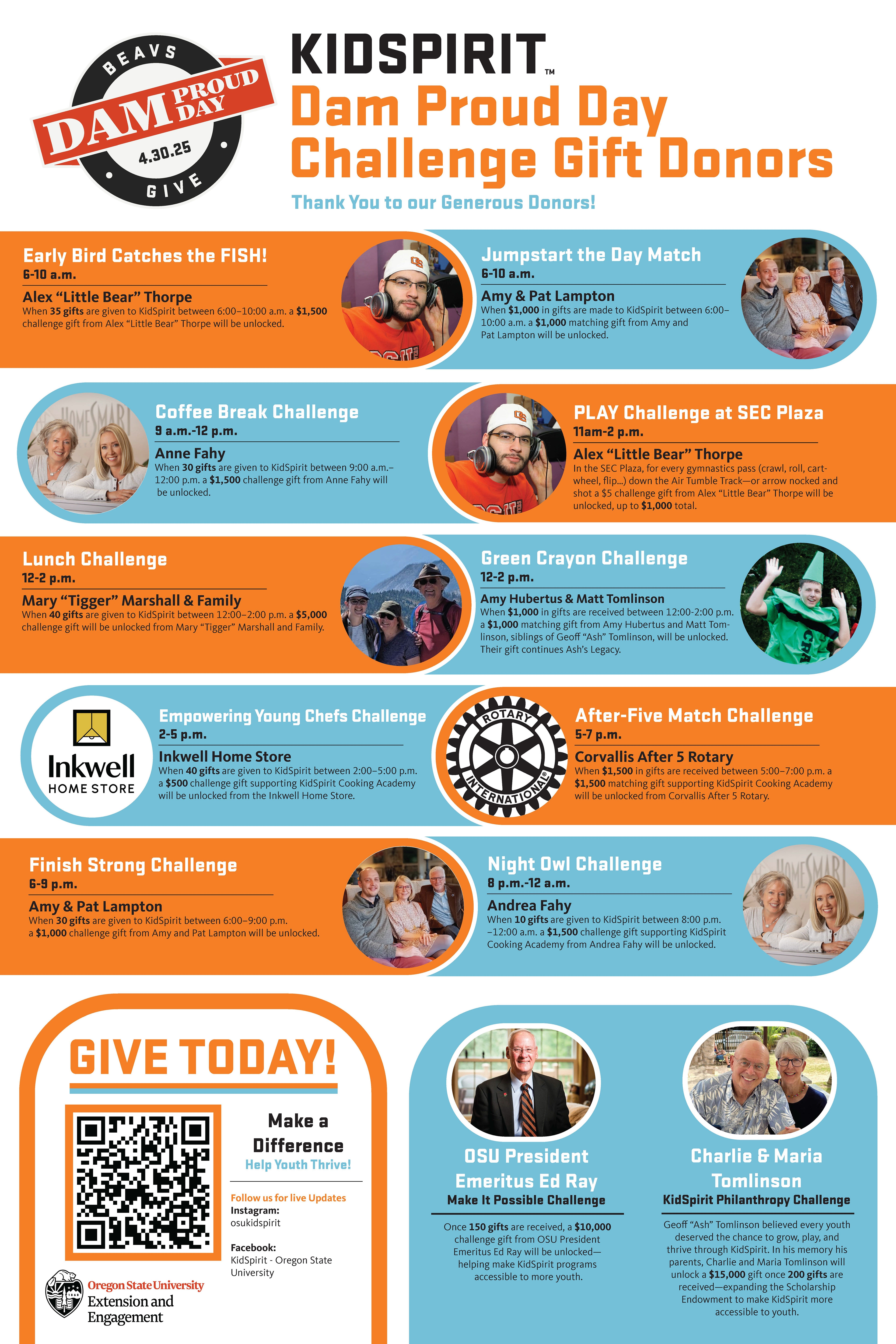 Dam Proud Day is an annual fundraiser across OSU Campus. Below are materials created to show the range of activities and challenges KidSpirit does on that day. In 2024 KidSpirit raised over $60,000 for youth participant scholarships, in 2025 they raised over $80,000. For both of these years I acted as the marketing lead, working on major design projects, a consistent social media presence and ensuring other marieral were being made in a timely manner. In 2025 KidSpirit won a marketing award at the Dammy's for our Stewardship Strategy.